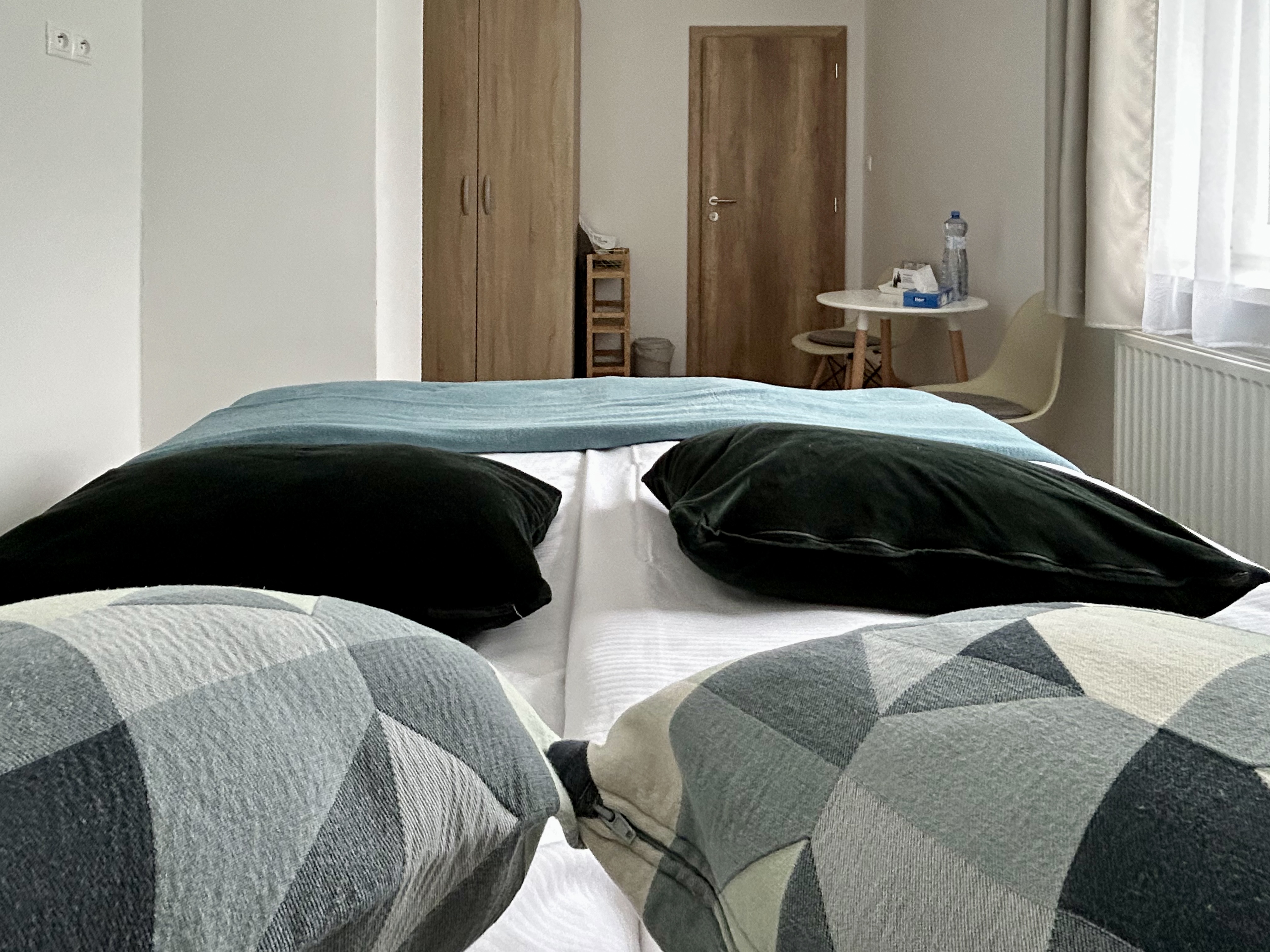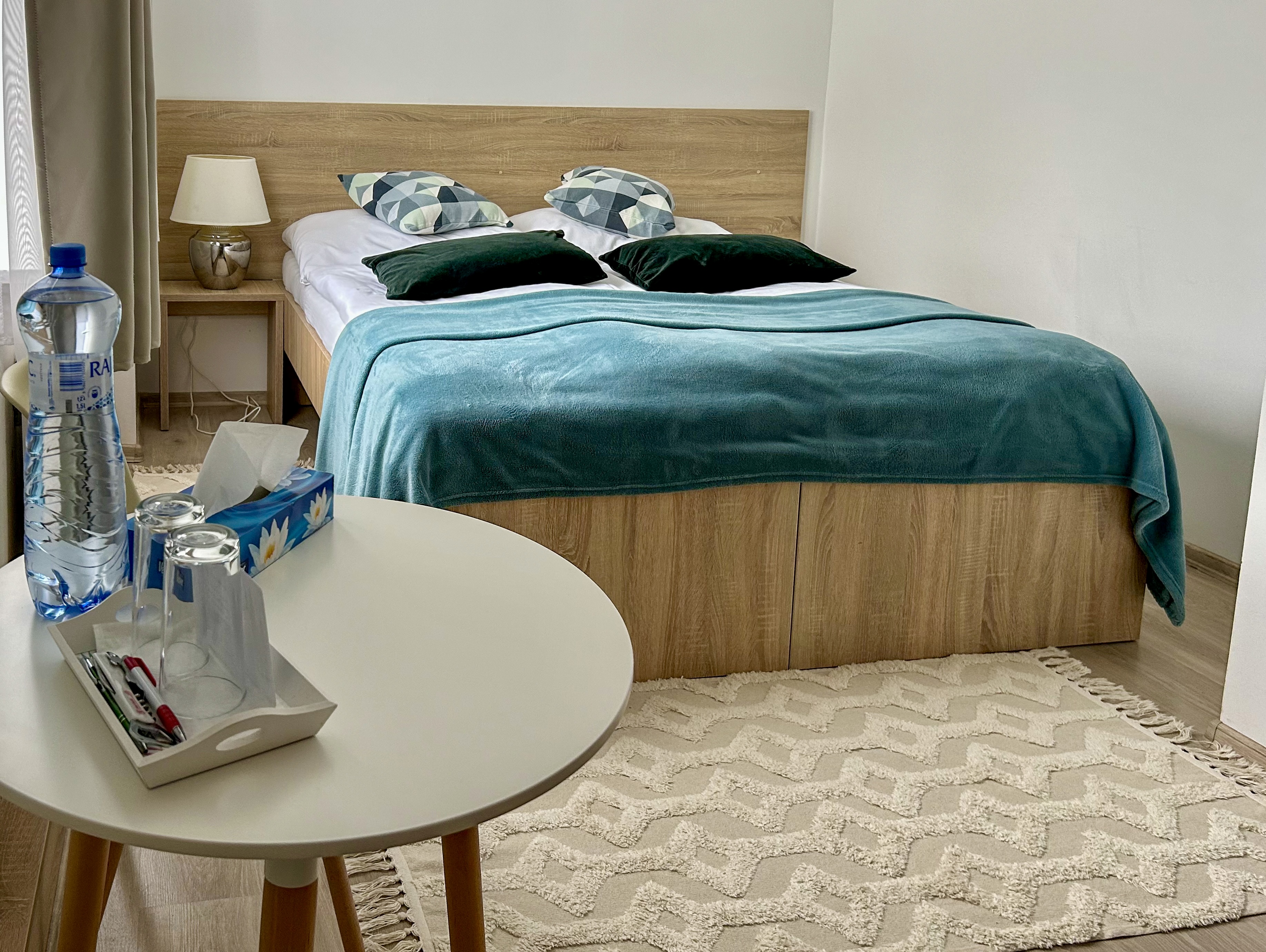 Moderná izba s manželskou posteľou je zariadená novým nábytkom. Disponuje vlastnou kúpeľňou so sprchovým kútom. Ponúka komfortné a útulné zázemie pre príjemný pobyt vo dvojici.